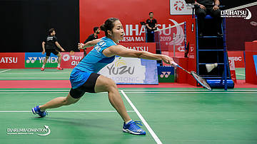 Ratchanok INTANON (Thailand) menggapai shuttlecock