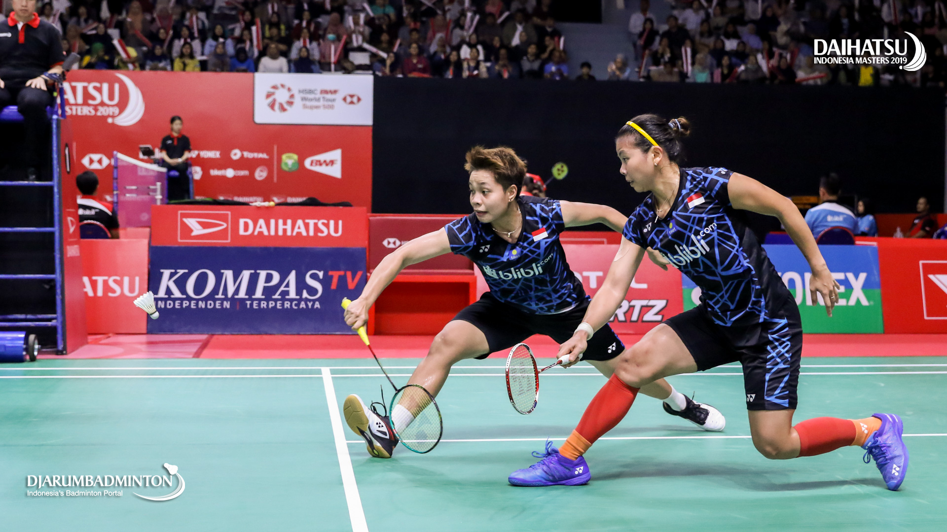 Greysia POLII/Apriyani RAHAYU ((Indonesia) berusaha menggapai pengembalian