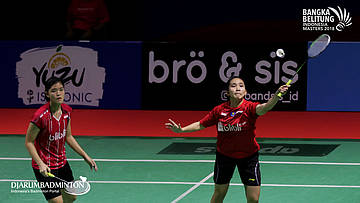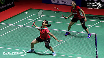 Maretha Dea Giovani/Masita Mahmudin (INA) bersiap menyambut pengembalian