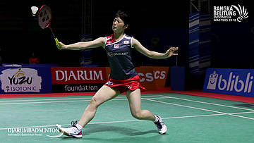 Minatsu Mitani (JPN) mengembalikan shuttlecock