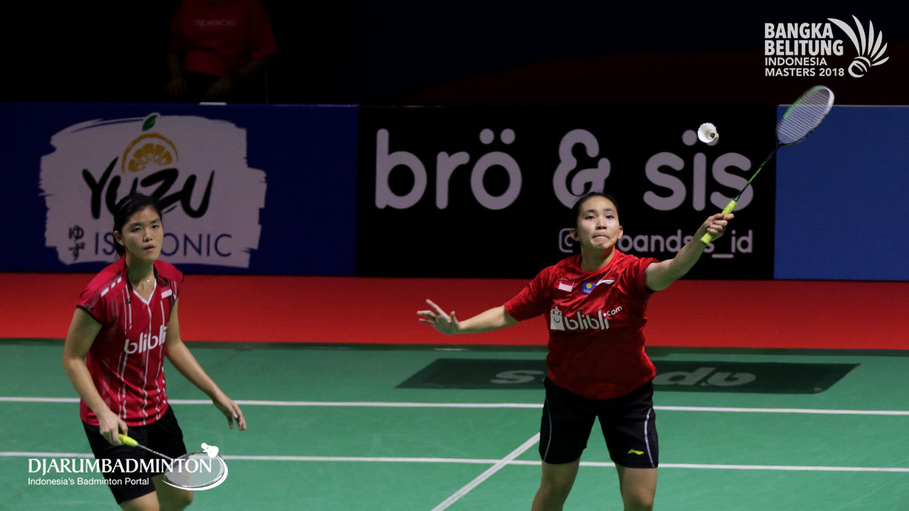 Maretha Dea Giovani/Masita Mahmudin (INA) menghadang serangan