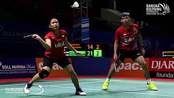 Rinov Rivaldy/Phita Haningtyas Mentari (INA) bersiap menyambut pengembalian