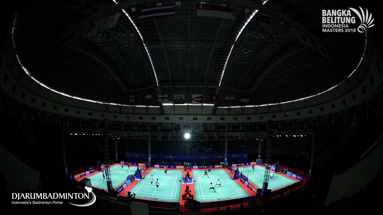 Suasana GOR Sahabudin, pada babak kualifikasi Bangka Belitung Indonesia Masters 2018 BWF Tour Super 100