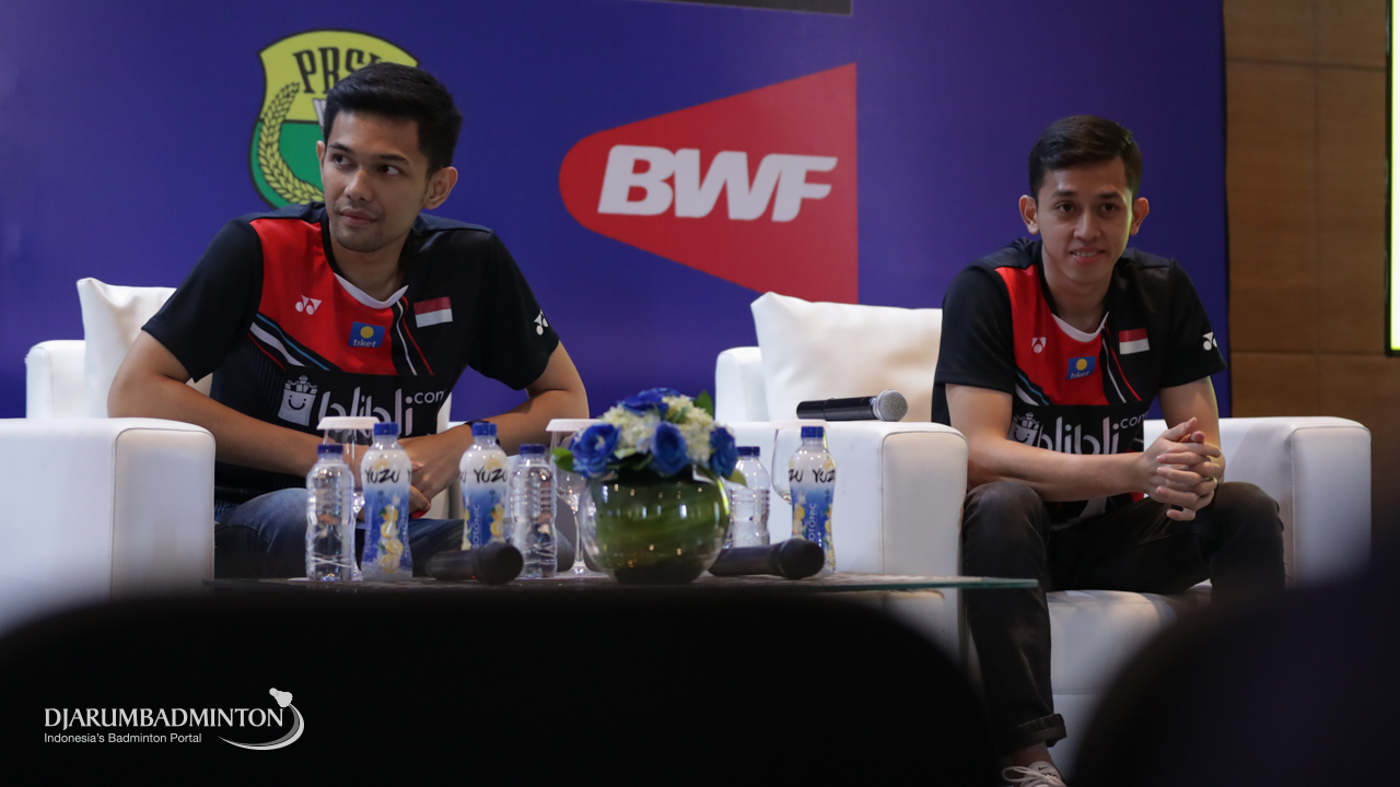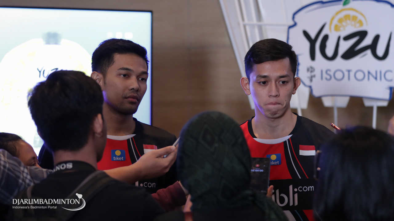 Fajar ALFIAN/Muhammad Rian ARDIANTO (INA) menjawab pertanyaan dari wartawan