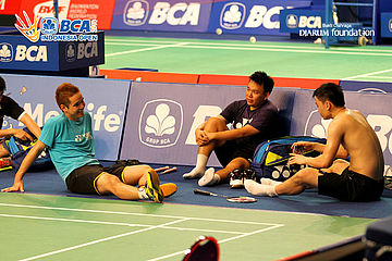 Fie Cho Soong (Malaysia) saat menunggu giliran untuk berlatih di Istora Senayan