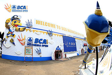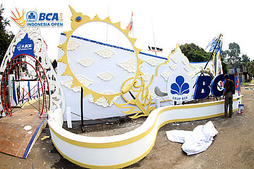 Dekorasi BCA Indonesia Open Super Series Premiere 2014 dengan ornamen wayang
