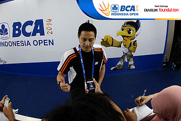 Bonsak Ponsana (Thailand) sedang diwawancarai media seusai bertanding