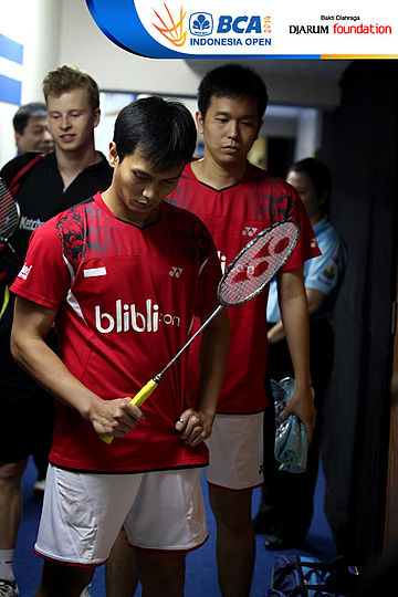 Moh Ahsan/Hendra Setiawan (Indonesia) bersiap memasuki lapangan pertandingan