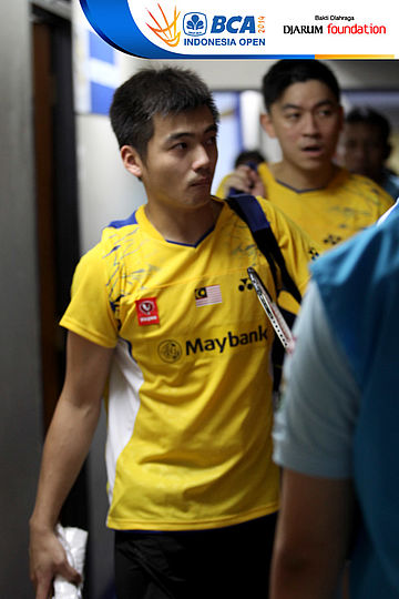 Tan Boon Heong/Tan Wee Kiong (Malaysia) bersiap memasuki lapangan pertandingan