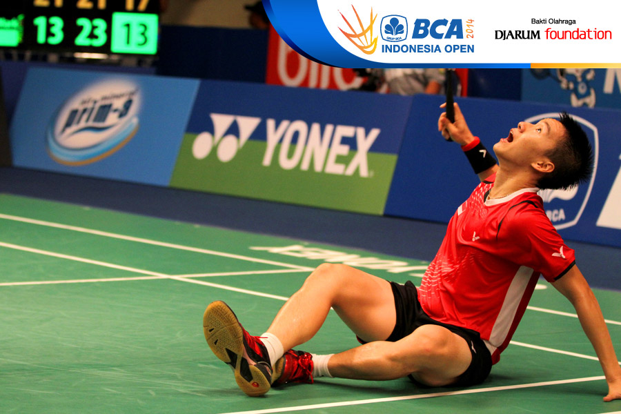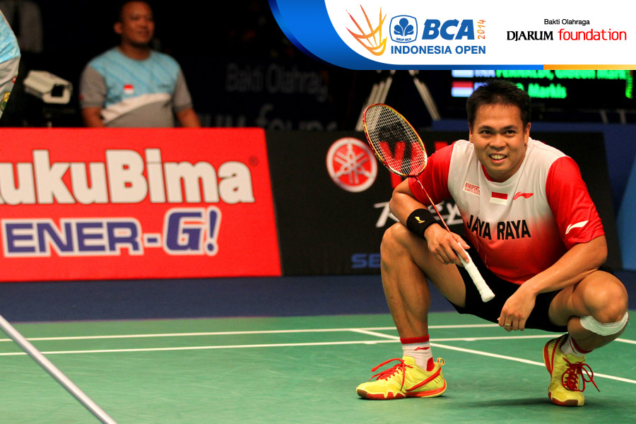Gaya Markis Kido (Indonesia) saat kehilangan poin