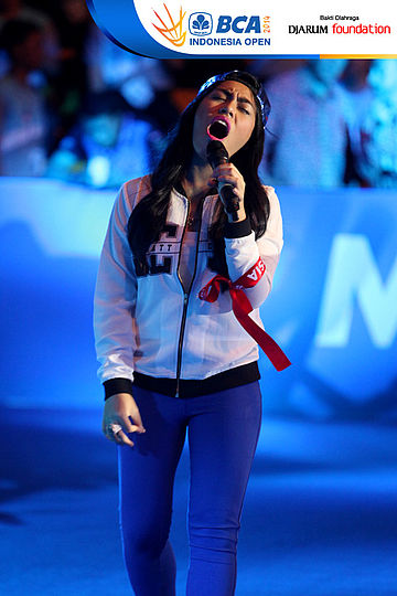 Audrey saat menghibur ribuan penonton pada gelaran BCA Indonesia Open Super Series Premier 2014