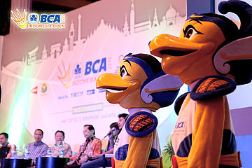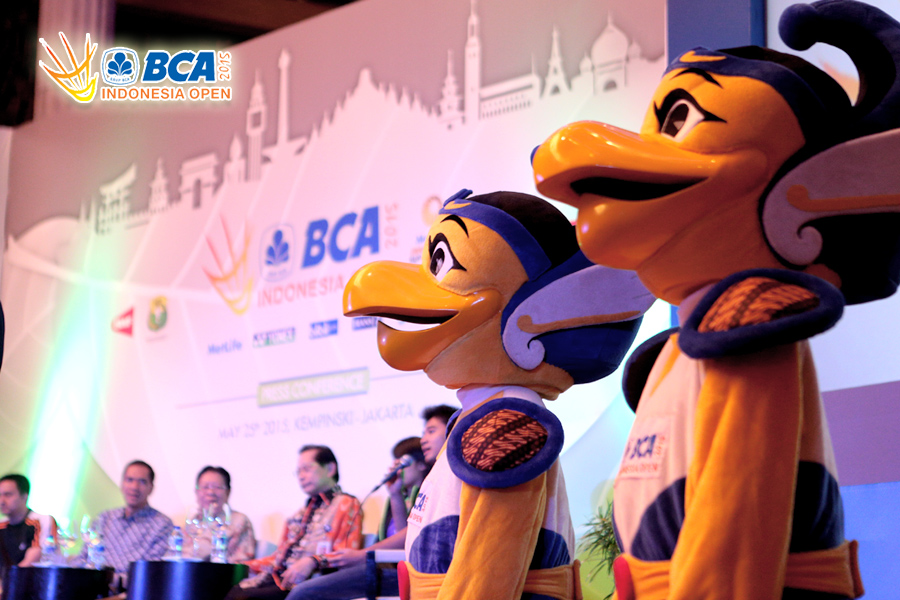 Maskot BIO pada gelaran Press Conference BCA Indonesia Open Super Series Premier 2015