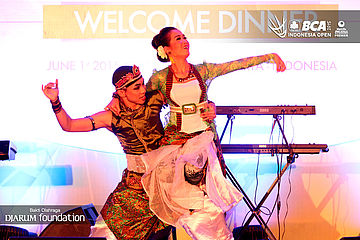 Salah satu penari saat tampil menghibur para tamu undangan di Welcome Dinner BCA Indonesia Open Super Series Premier 2015.