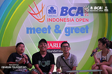 Ony Syahrial, Jawir Smile, Idan Separo (Komunitas Smile) saat acara meet and greet BCA Indonesia Open Super Series Premier 2015.