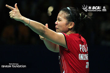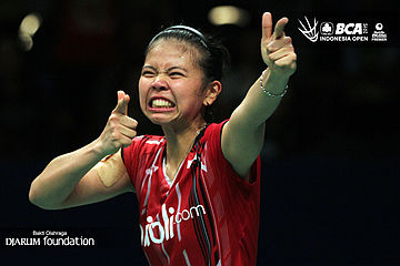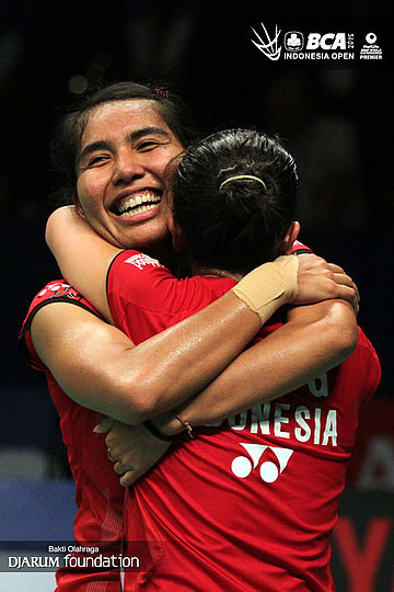 Selebrasi kemenangan Greysia Polii/Nitya Krishinda (Indonesia).