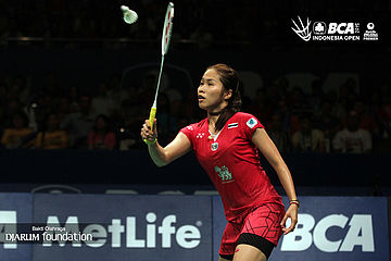 Ratchanok Intanon (Thailand) menghadang serangan dari Yui Hashimoto (Jepang)