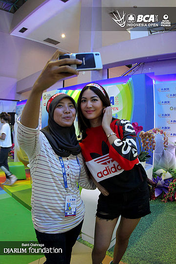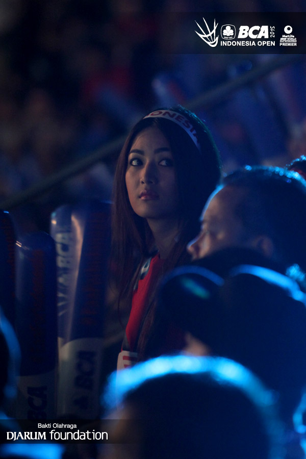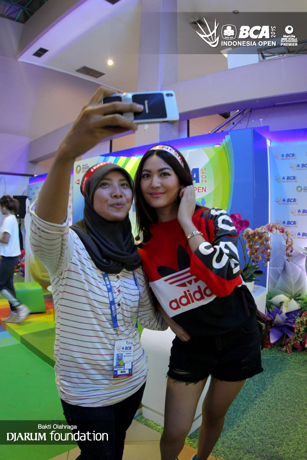 Maria Selena saat menyaksikan partai Final BCA Indonesia Open Super Series Premier 2015 di Istora Senayan