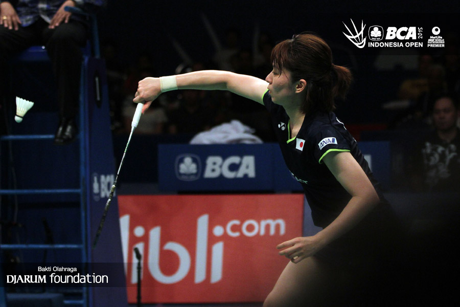 Yui Hashimoto (Jepang) menyambut pengembalian dari Ratchanok Intanon (Thailand)