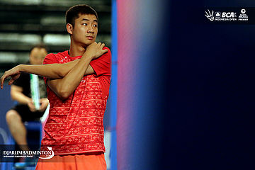 Wang Zhengming (Tiongkok) saat melakukan peregangan sebelum berlatih