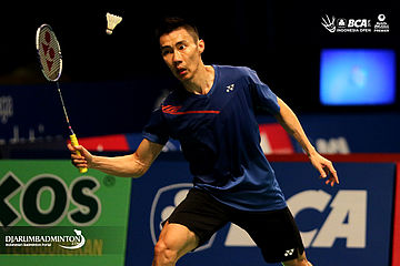 Khe Wei Woon (Malaysia) mengembalikan shuttlecock saat berlatih