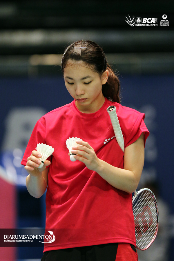 Misaki Matsutomo (Jepang) memilih shuttlecock