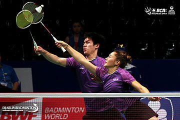 Matthew Chau/Gronya Somerville (Australia) melepaskan serangan