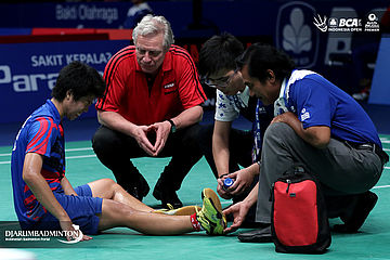 Jessica Muljati (Indonesia) saat mendapatkan perawatan medis