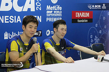 Lee Yong Dae dan Yoo Yeon Seong saat menjawab pertanyaan awak media