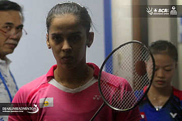 Saina Nehwal (India) bersiap memasuki arena pertandingan