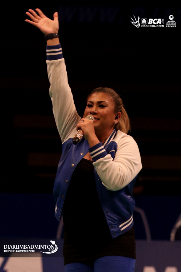 Audrey Tapiheru saat tampil memeriahkan ajang bulutangkis bergengsi BCA Indonesia Open Super Series Premier 2016