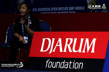 Pelatih tunggal putri Indonesia, Bambang saat memberikan intruksi