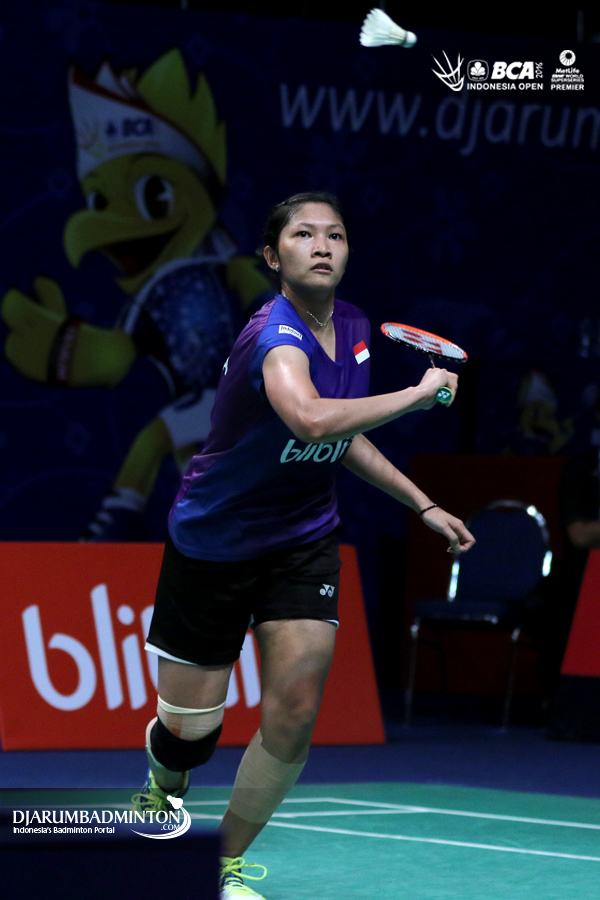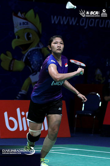 Lindaweni Fanetri (Indonesia) mengembalikan shuttlecock