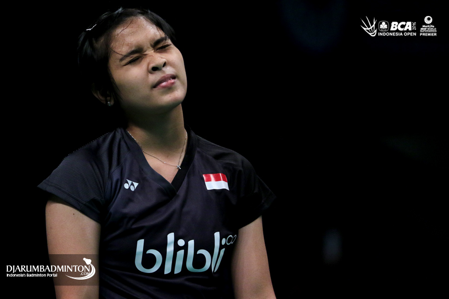Ekspresi kekecewaan Gregoria Mariska (Indonesia)