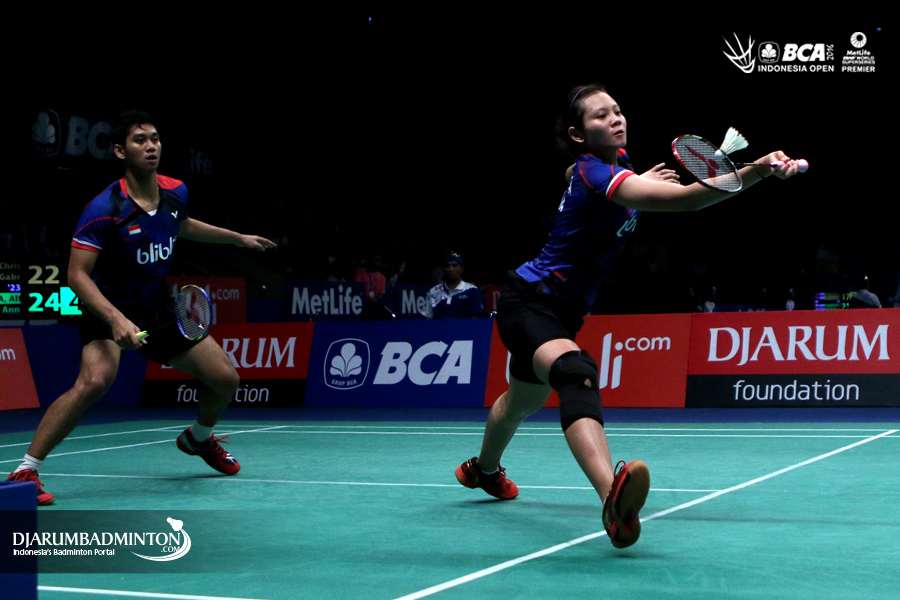 Alfian Eko/Annisa Saufika (Indonesia) menyambut pengembalian
