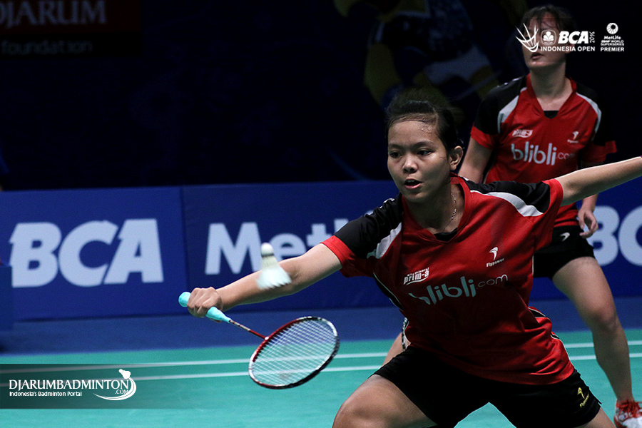 Agatha Imanuela/Siti Fadia (Indonesia) menghadang serangan
