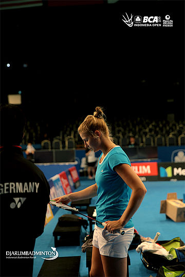 Fabienne Depres (Jerman) bersiap melakukan latihan