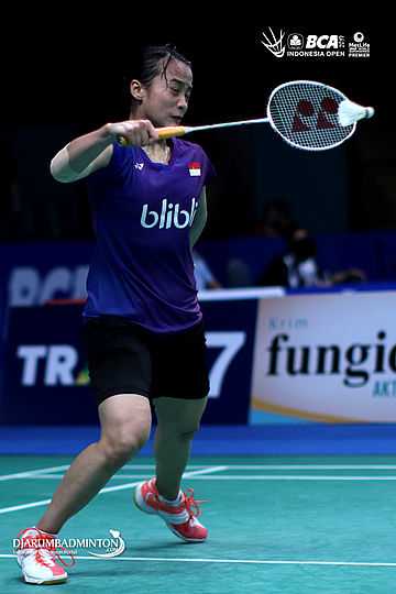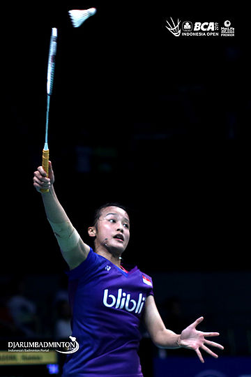 Hanna Ramadhini (Indonesia) mengembalikan shuttlecock