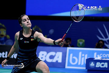 Carolina Marin (Spanyol) melepaskan serangan
