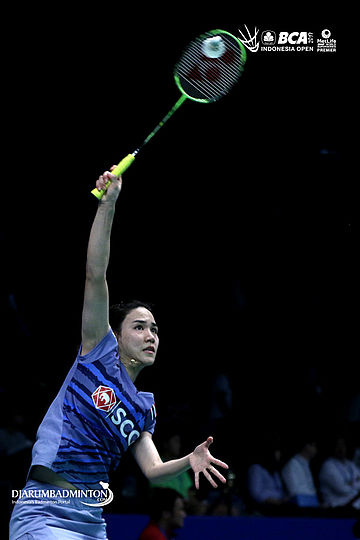 Nitchaon Jindapol (Thailand) melepaskan smash