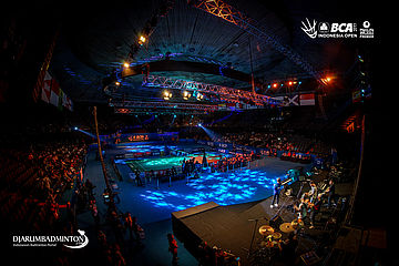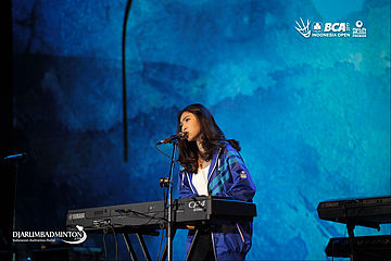Suasana saat Isyana Sarasvati menghibur penonton dalam gelaran BCA Indonesia Open Superseries Premier 2017
