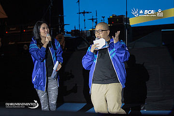 Kemal dan Indi menjadi pembawa acara dalam gelaran BCA Indonesia Open Superseries Premier 2017