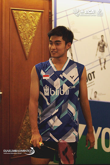 Panji Ahmad Maulana (Indonesia) melakukan pemanasan sebelum bertanding