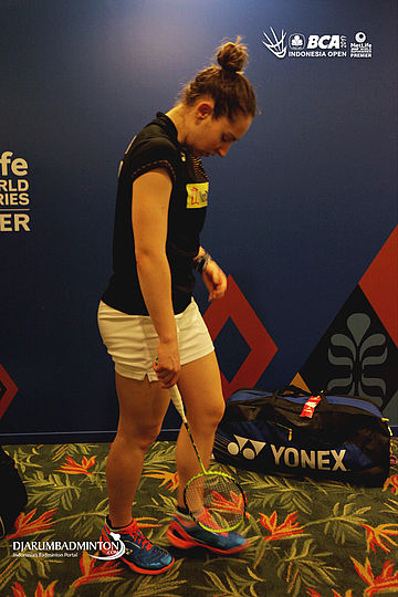Natalia Koch Rohde (Denmark) melakukan pemanasan sebelum bertanding