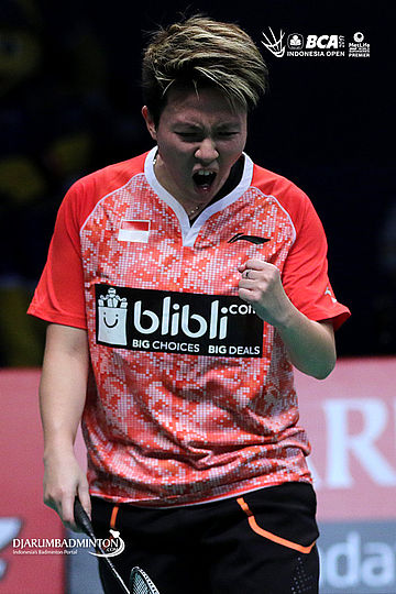 Selebrasi kemenangan Liliyana Natsir (Indonesia)