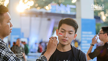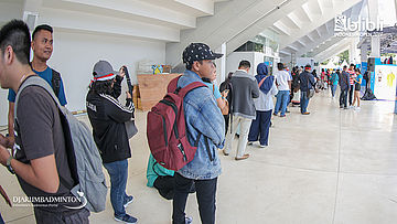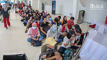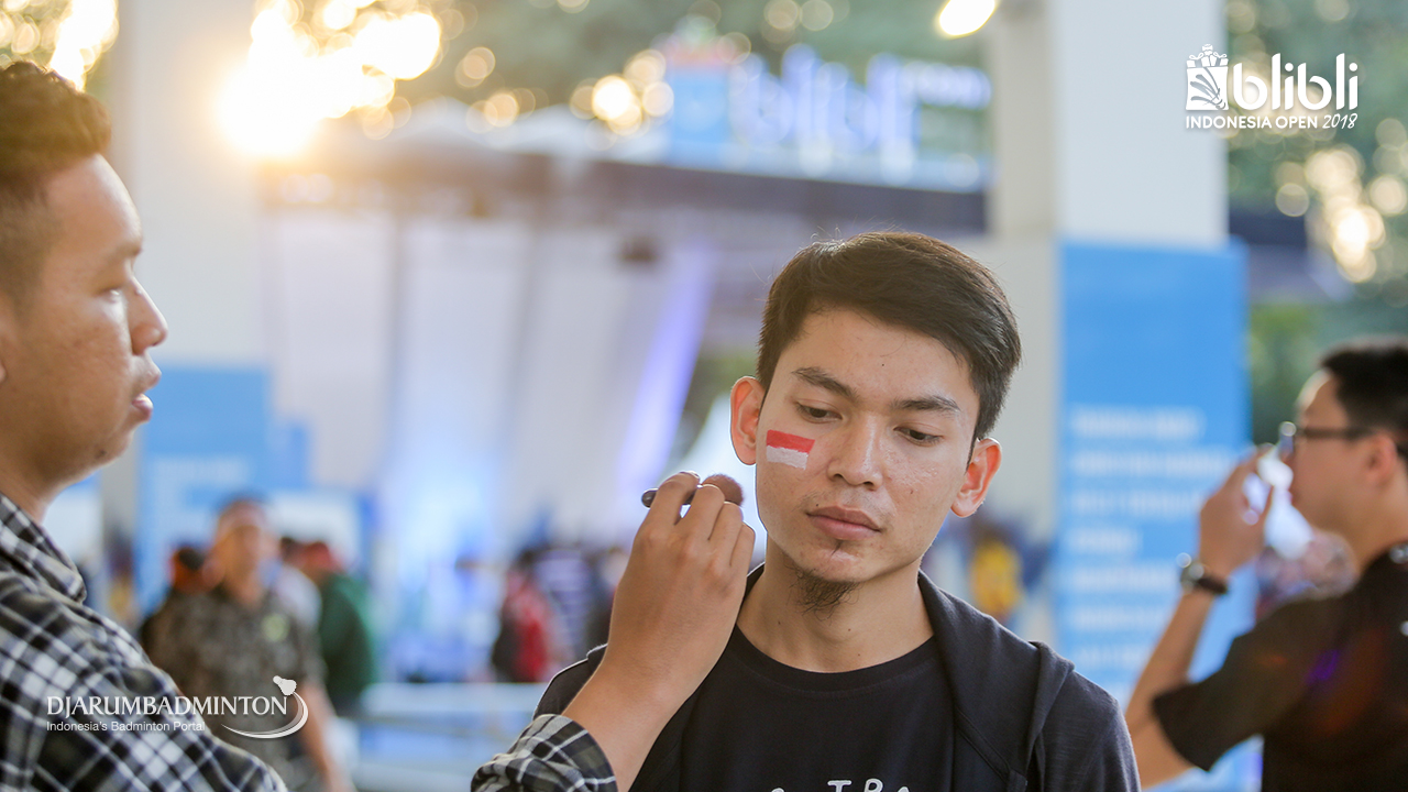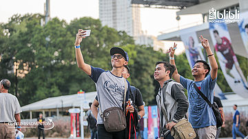 Beberapa pengunjung berfoto di sekitaran area BLIBLI Indonesia Open 2018
