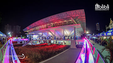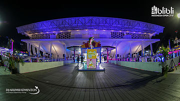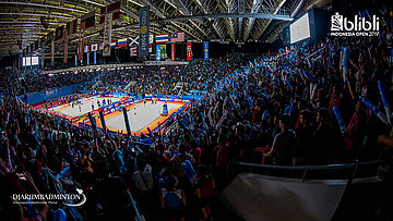 Pembukaan acara oleh MC pada laga semi final BLIBLI Indonesia Open 2018