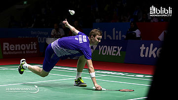 Viktor Axelsen (DEN) menghadang serangan