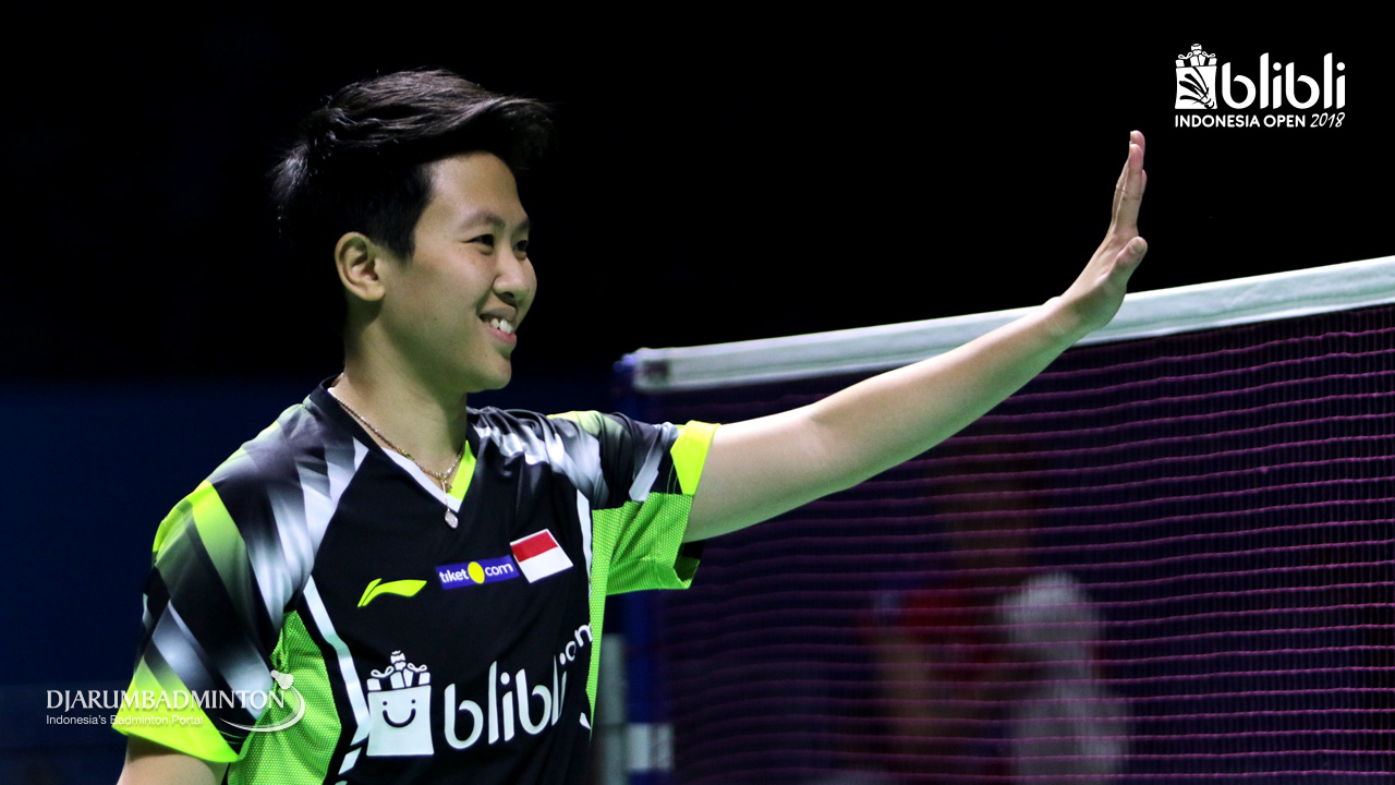 Jonatan Christie (INA) bersiap menyambut pengembalian