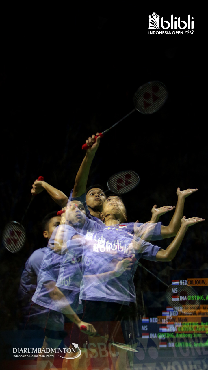 Salah satu hakim servis dengan teliti memperhatikan serve yang akan dilakukan Kevin Sanjaya Sukamuljo (INA)