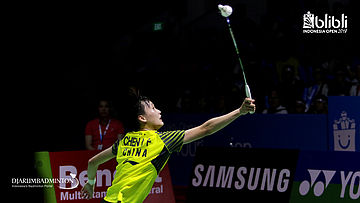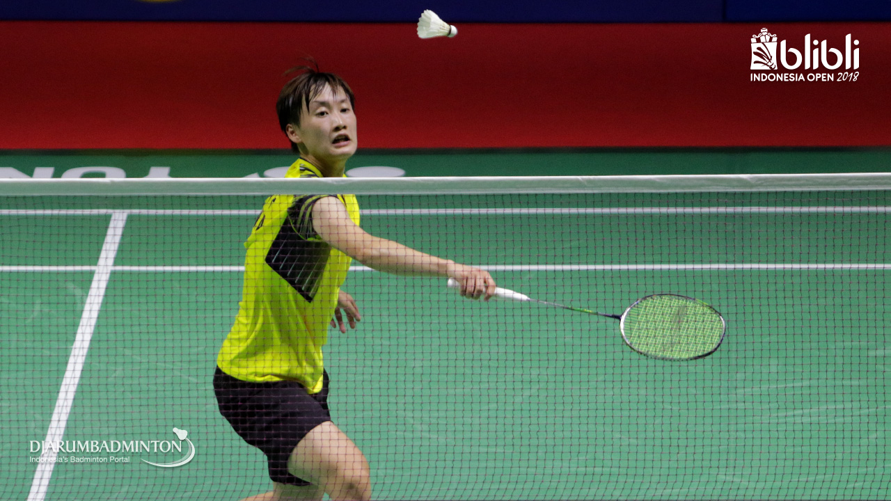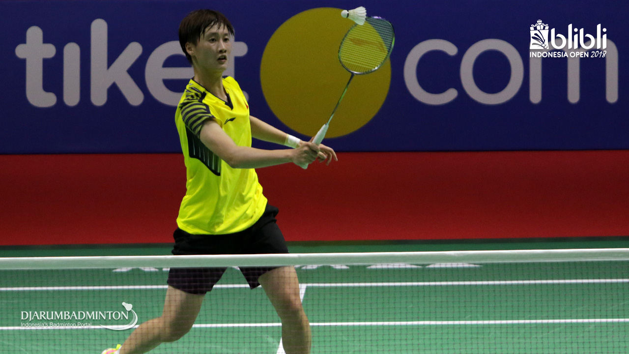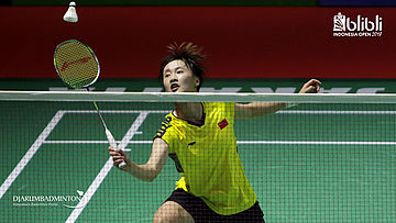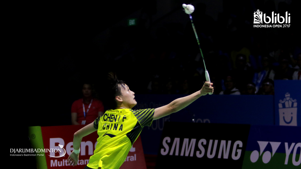 Chen Yufei (CHN) mengembalikan shuttlecock